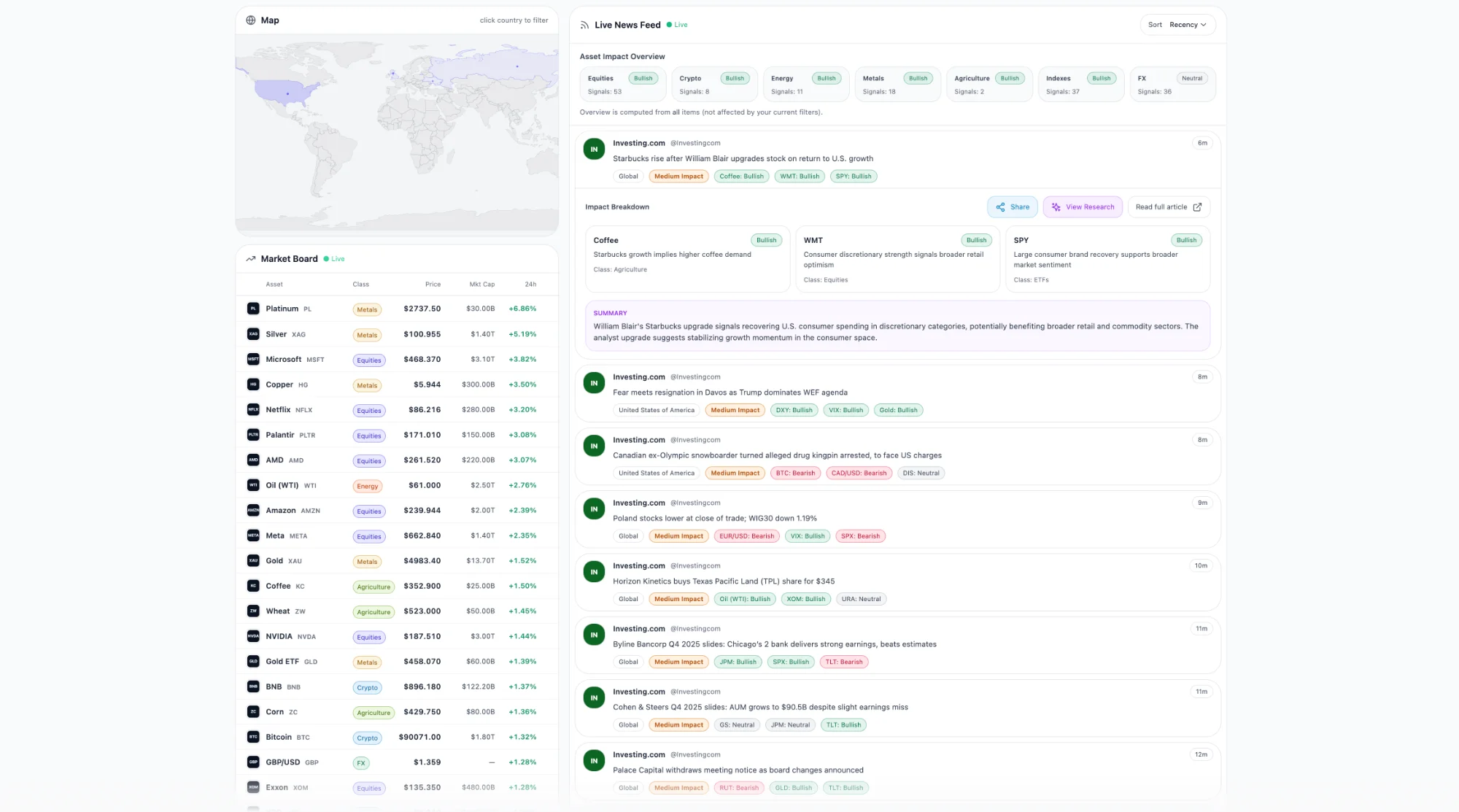 Instant AI analysis of how news affects specific assets with directional insights.